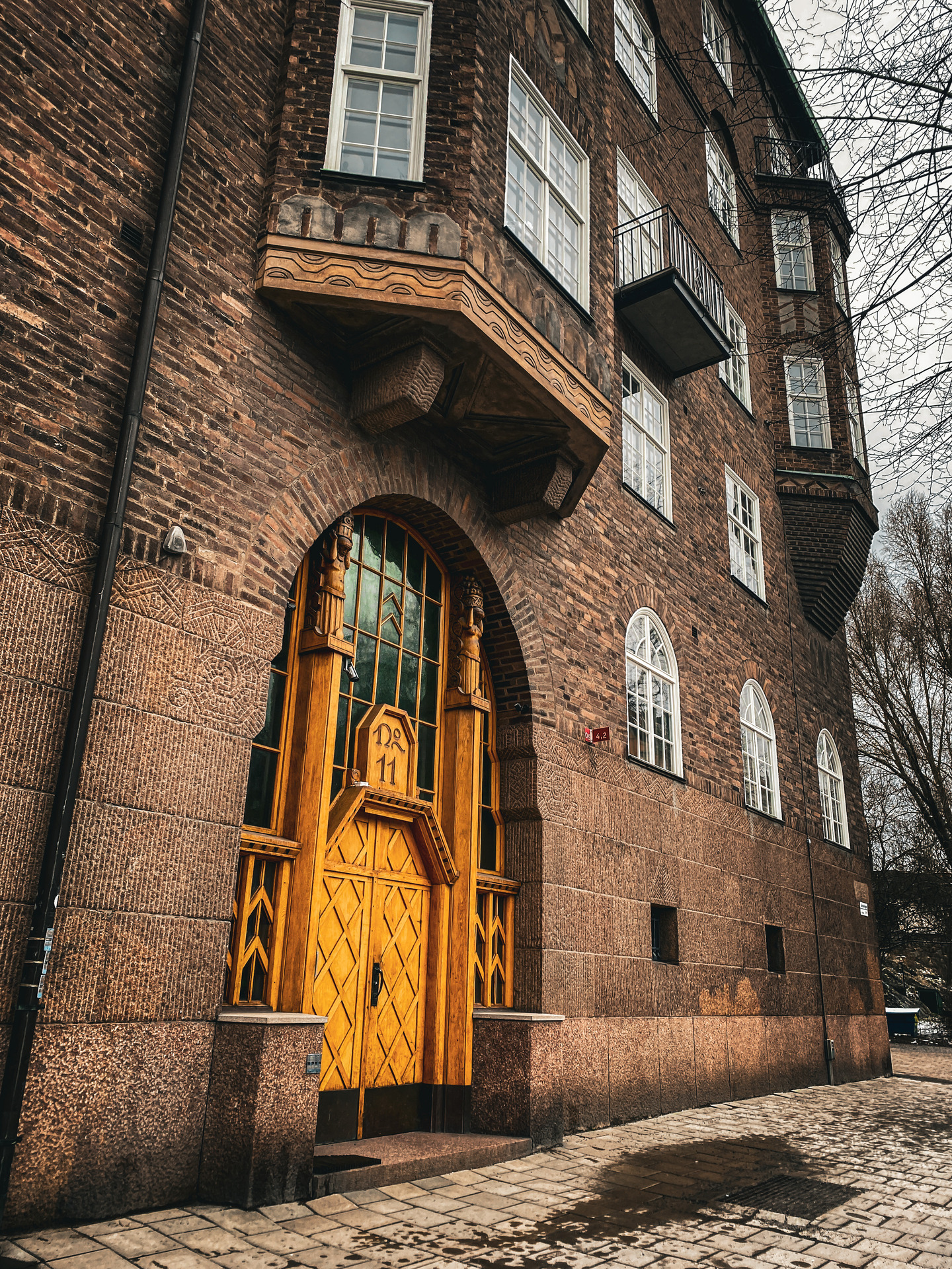 Gul port brun fasad, jag älskar dessa byggnader i Lärskstaden, Östermalm.