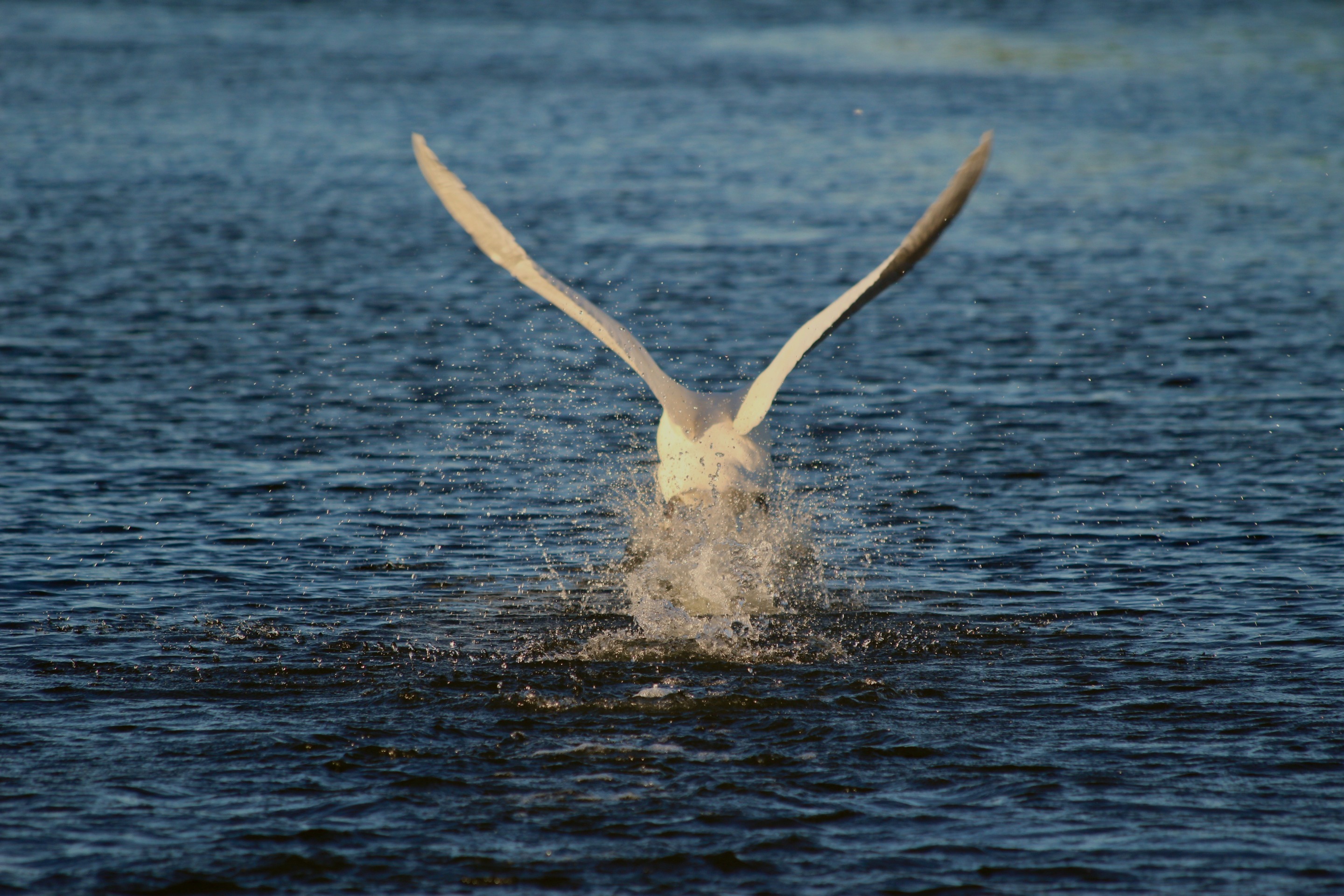 En svan tar sats och springer i vattnet för att sen lyfta :)